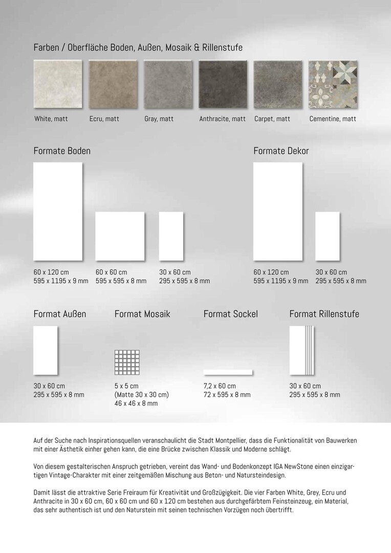 IGA NewStone ist inspiriert von den typischen Farben der südfranzösischen Stadt Montpellier – eine Stadt, die wie kaum eine andere für epochalen Charme und moderne Architektur steht.