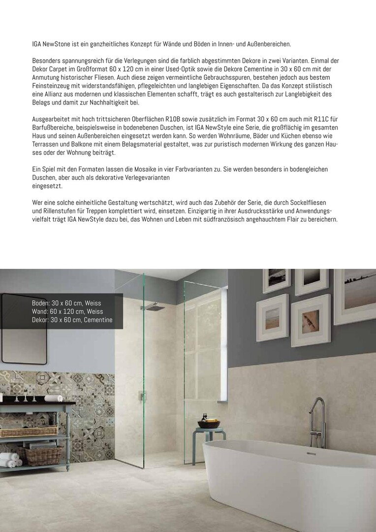 Von diesem gestalterischen Anspruch getrieben, vereint das Wand- und Bodenkonzept IGA NewStone einen einzigartigen Vintage-Charakter mit einer zeitgemäßen Mischung aus Beton- und Natursteindesign.
