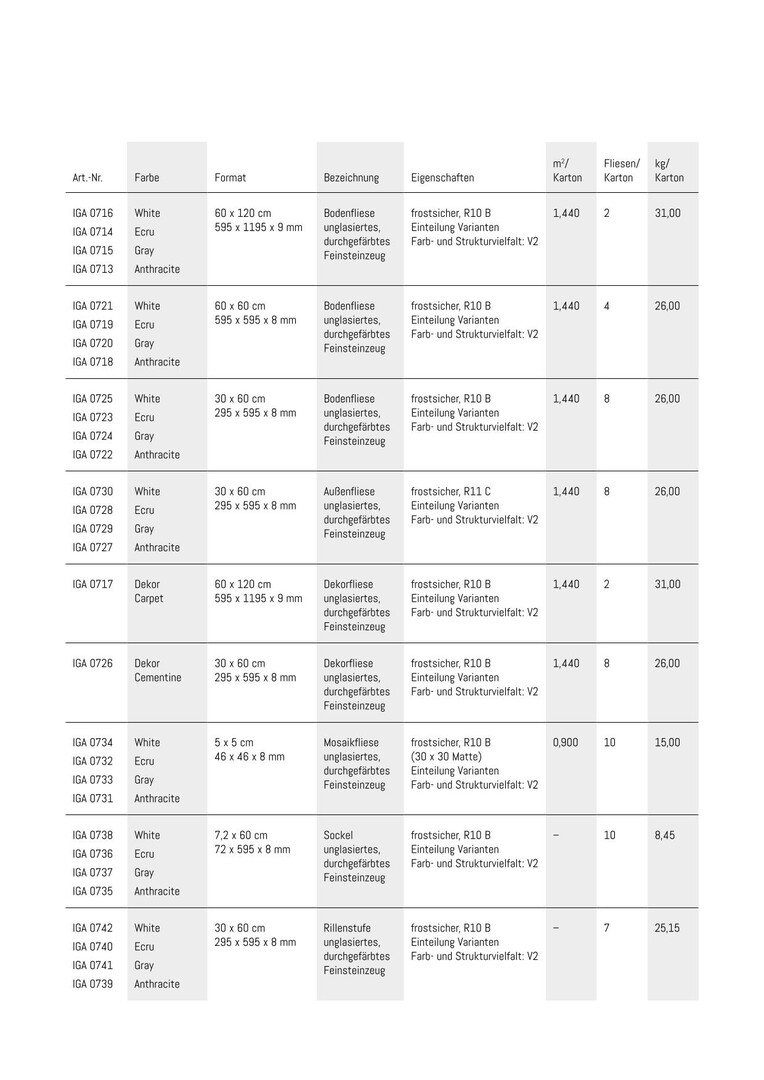 Damit lässt die attraktive Serie Freiraum für Kreativität und Großzügigkeit. Die vier Farben White, Grey, Ecru und Anthracite in 30 x 60 cm, 60 x 60 cm und 60 x 120 cm bestehen aus durchgefärbtem Feinsteinzeug, ein Material, das sehr authentisch ist und den Naturstein mit seinen technischen Vorzügen noch übertrifft.